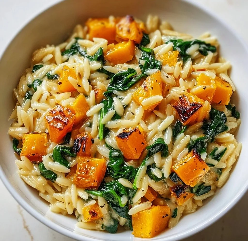 Keyword Butternut Squash, Comfort Food, Creamy Orzo, Easy Recipe, Spinach